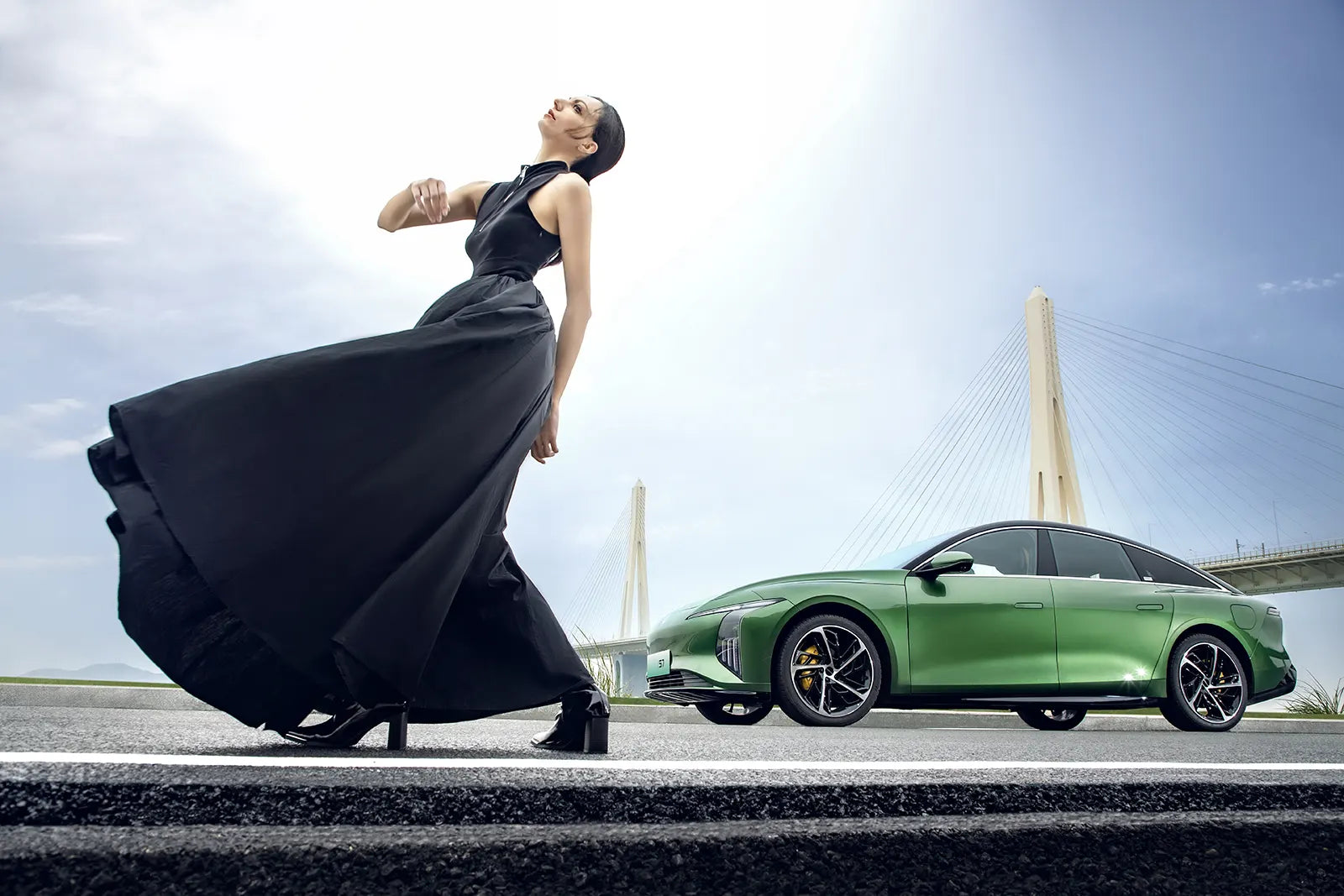 The 100% electric sedan combines elegance and sustainability, offering a silent and emission-free ride.