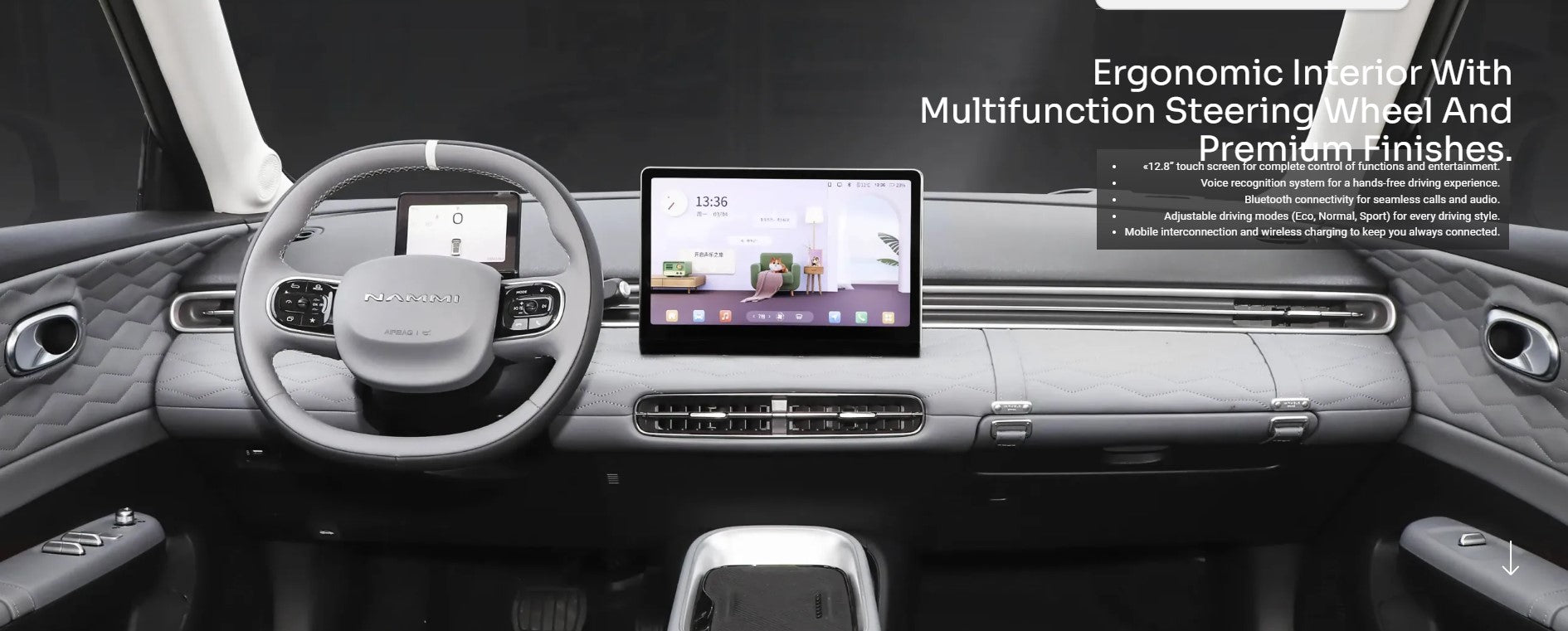 Discover the true power of electric with Nammi Plus 268 Mile Range. Enjoy a luxurious and modern driving experience with unmatched performance and aerodynamic design. With innovative features and cutting-edge technology, NAMMI Air is the pinnacle of electrical efficiency.